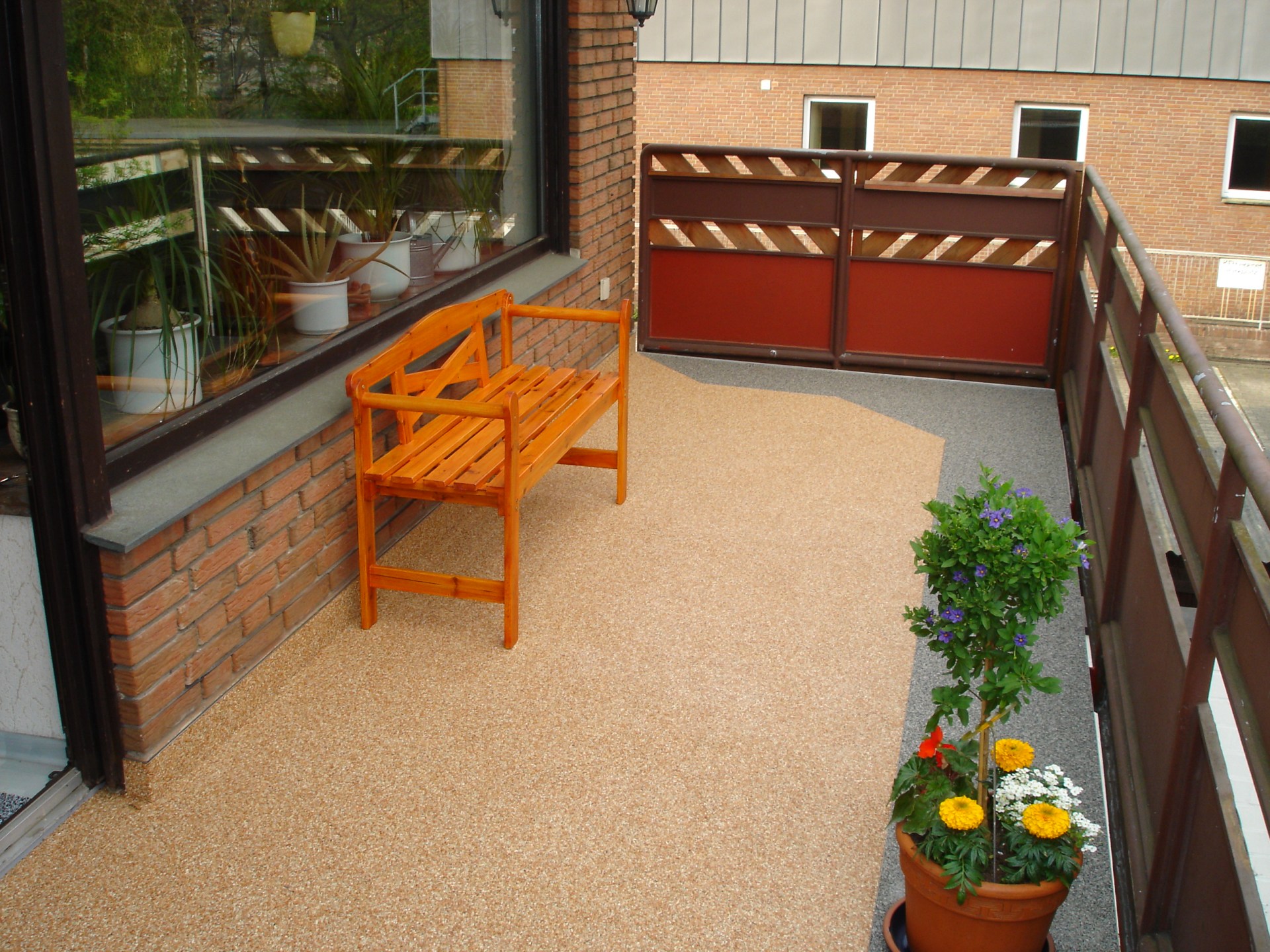 estetická a funkční stránka tohoto povrchu. Počátkem 90. let se v západní Evropě začaly nabízet první kamínkové koberce a to většinou s epoxidovým pojivem. Firma HAHNE, jakožto výrobce epoxidových pryskyřic, věděla o úskalích těchto pojiv ve spojení s kamínky od samého počátku. Z těchto důvodů přišla na trh jako jedna z prvních se speciálněvyvinutým polyuretanovým dvousložkovým pojivem s obsahem rozpouštědel. Toto pojivo dosahovalo ve všech zátěžových testech pro venkovní prostředí výrazně lepších hodnot než ta nejkvalitnější epoxidová pojiva.Značné rozdíly byly zejména v životnosti při simulacích dlouhodobého zatížení. Epoxidy ve spojení s kamínkovým kobercem použitým v exteriéru dosahují velmi nízké a krátkodobé odolnosti vůči světelnému a ultrafialovému záření. Další jejich slabinou je i nižší pružnost a tím i schopnost absorbovat pohyby podkladních konstrukcí.Firma HAHNE má vzhledem ke své specializaci v sortimentu rovněž epoxidové pojivo bez obsahu rozpouštědel HADALAN® MBH 13E, které doporučujeme používat v interiérech.